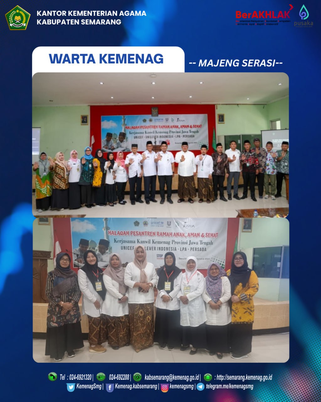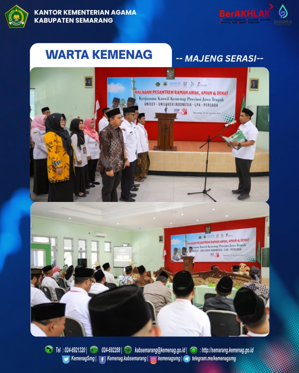 Kasi Pendidikan Diniyah dan Pondok Pesantren pada Kantor Kementerian Agama Kabupaten Semarang ikuti kegiatan pembukaan Halaqah Pesantren Ramah Anak, Aman dan Sehat di Asrama Haji Transit Manyaran Semarang, Rabu (27/8/2025). Kegiatan ini merupakan program kerja sama antara Kantor Wilayah Kementerian Agama Provinsi Jawa Tengah, UNICEF, Unilever Indonesia, LPA, dan Persada.