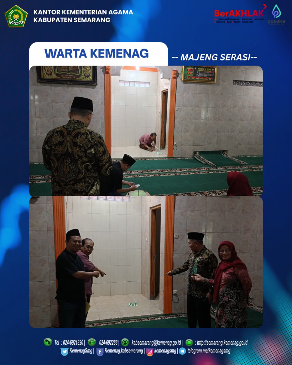 Proses verifikasi arah kiblat dilakukan oleh Tim Pengukuran Arah Kiblat Kantor Kementerian Agama Kabupaten Semarang yang dipimpin langsung oleh Penyelenggara Zakat Wakaf Chambali. Tim membawa peralatan profesional seperti theodolit, kompas kiblat, serta aplikasi pengukur arah kiblat digital untuk memastikan hasil pengukuran akurat sesuai ketentuan syar’i.